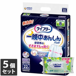 【今ならシルコットウェットプレゼント】 5個セット ユニ・チャーム ライフリー 一晩中あんしん尿とりパッド スーパープラス 22枚