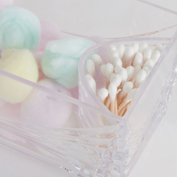 | Desktop Collection見せる収納シリーズに透明感を活かした収納アイテムをラインナップしました。 コットンや綿棒等の収納にピッタリのケース。 内部は、両側に綿棒収納に最適なポケットが有ります。 |