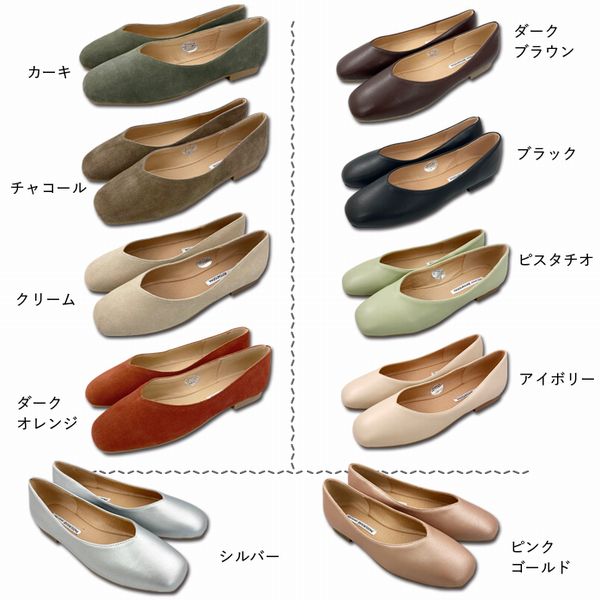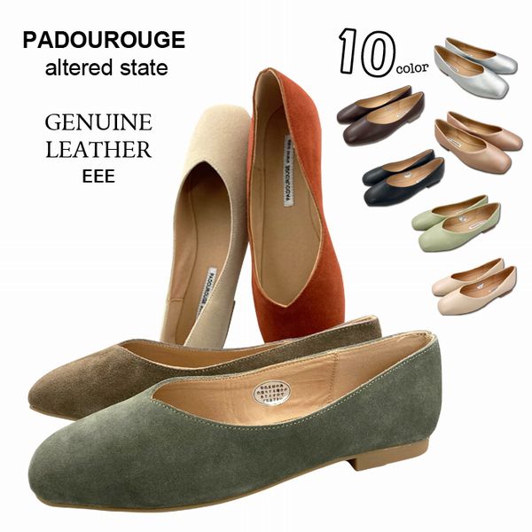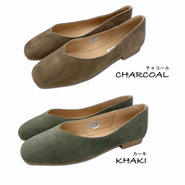 バレエシューズ レディースシューズ レディースファッション 靴 本革 パンプス Vカット フラット 牛革 レザー スエード調 EEE 3E 超軽量 【送料無料】