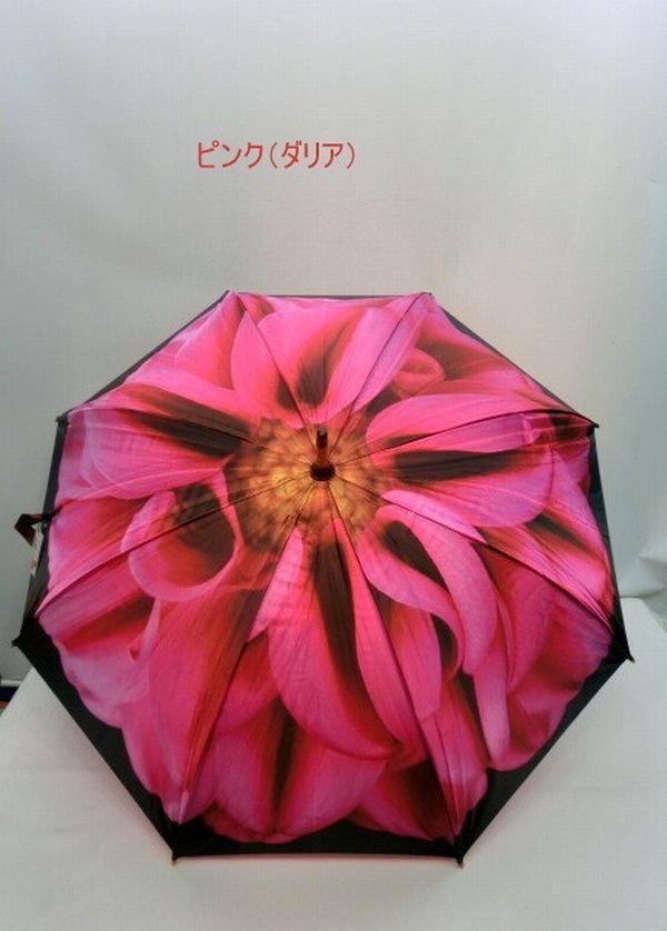 雨傘 傘 ファッション小物 レディースファッション 長傘 婦人 アート傘シリーズ サテン生地 フラワー柄 手開き ダリア ピンク デイジー 【送料無料】