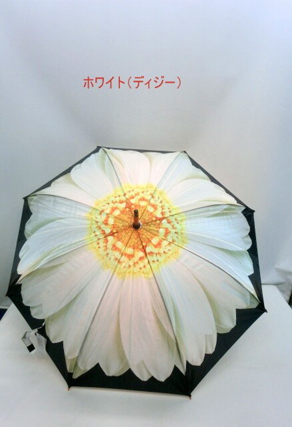 アート傘シリーズのフラワー柄手開き雨傘です。ダリア(ピンク)、デイジー(ホワイト)、薔薇(レッド)の3柄展開です。