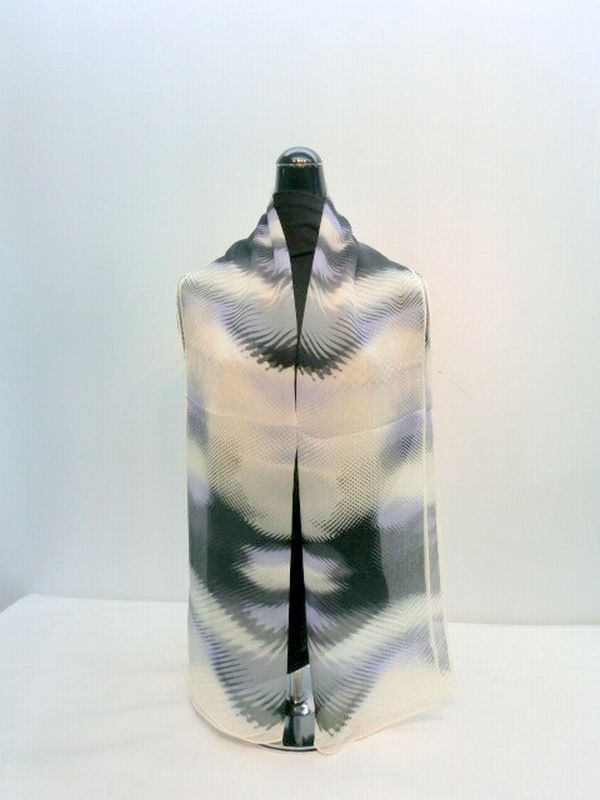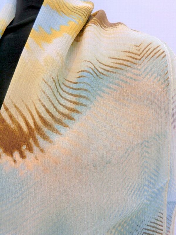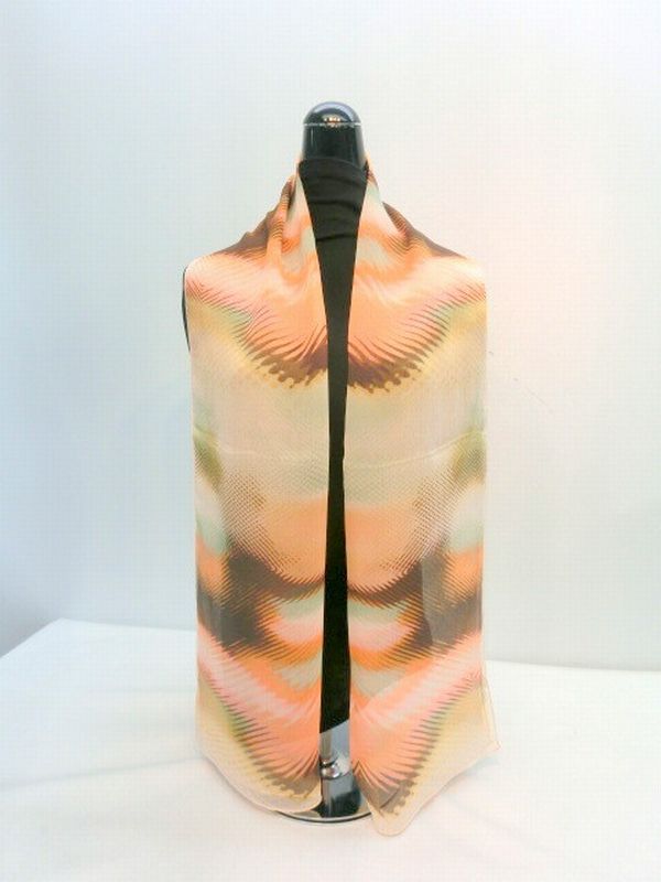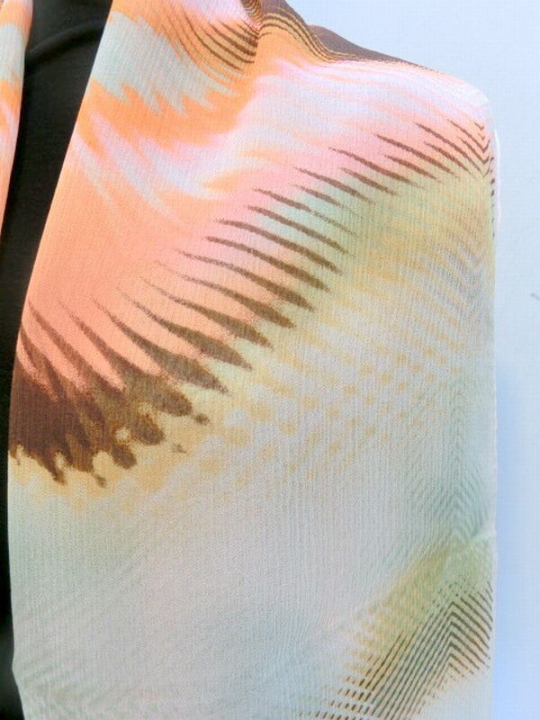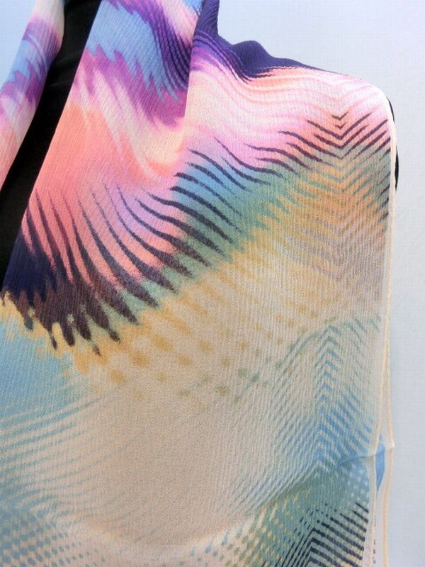 正絹の柔らかい楊柳生地使用の日本製ロングスカーフです。楊柳生地で締まりやすく、きれいなネオンカラー柄ロングスカーフです。