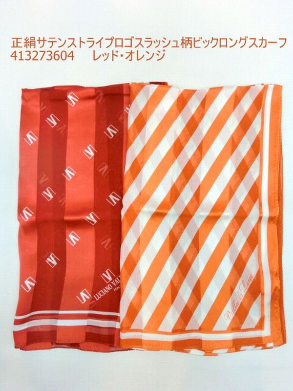 スカーフ ファッション小物 レディースファッション 正絹 サテン ストライプ ロゴスラッシュ柄 日本製 ビック ロングスカーフ 艶感ある 【送料無料】