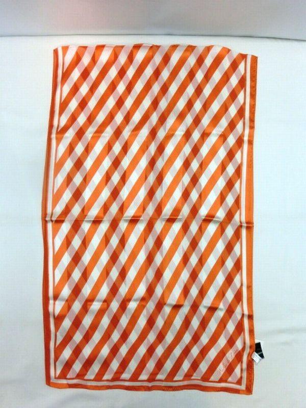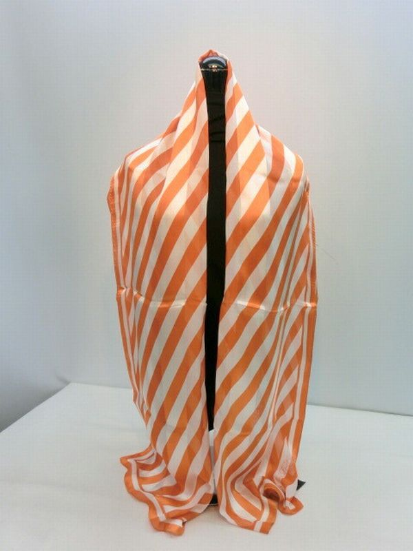 | 艶感のあるシルクサテンストライブの生地に、ロゴスラッシュ柄をつけたロングスカーフです。大き目サイズなので使い勝手抜群。首もとの秋冬のオシャレにぜひお試しください。 |
