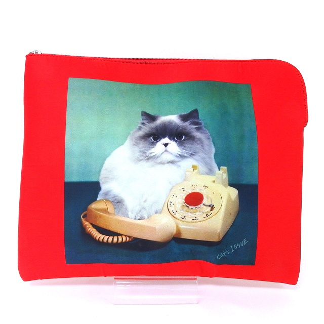 【中古】キャセリーニ casselini The Dancing Room クラッチバッグ スクエア キャットプリント ナイロンタッチ レッド
