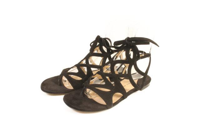 【中古】ポールアンドリュー Paul Andrew サンダル スウェード レースアップ 37 黒 ブラック /kf0520 ■PN レディース