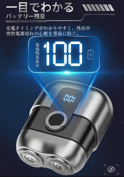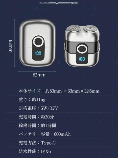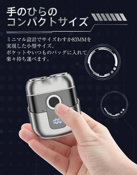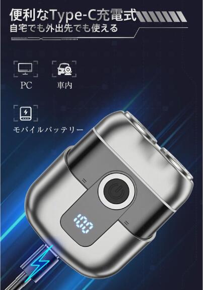 小型電動シェーバー メンズ 男性 髭剃り 電気シェーバー 電動ひげそり 軽量 コンパクト 乾湿両用 急速回転 TYPE-C充電式 IPX6防水
