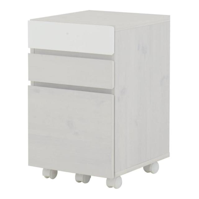 佐藤産業 HELM サイドチェスト 木製 鏡面 キャスター付き (ホワイト, モダン)