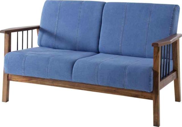 AZUMAYA デニムソファ ブラウン 2人掛け ティンバー PM-312