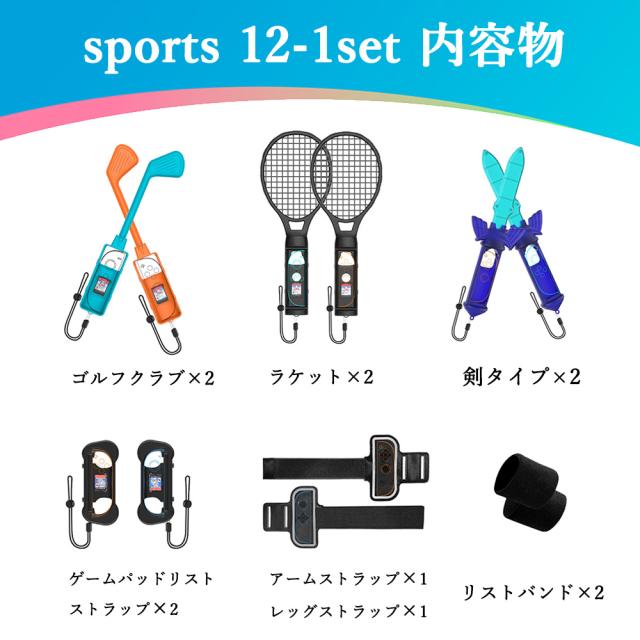 Switch 2 Sports ゲーム用 スイッチ2 対応 アクセサリーセット 【 12 in 1】ゴルフクラブ テニスバドミントンラケット バレーボール サッカー ダンス 対戦 セット 体感スポーツ対応 Nintendo Switch 2 周辺機器 ジョイコン Joy-Con アクセサリー