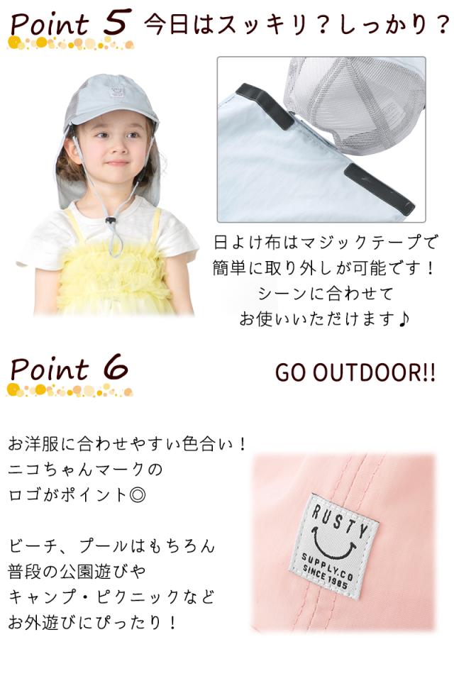 【20%OFF!!】 RUSTY キッズ UV キャップ 2way 帽子 女の子 男の子 ビーチ マリン サーフ 《レビュー記入でメール便無料》 日よけ 帽子 紫外線 90%以上カット あご紐 安全設計 アウトドア 水遊び 100 110 120 130 140 シンプル おしゃれ 可愛い 963902 ラスティ