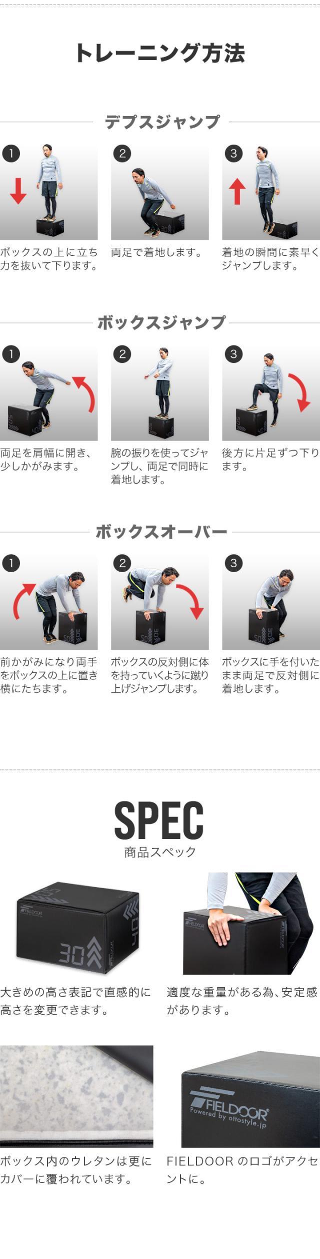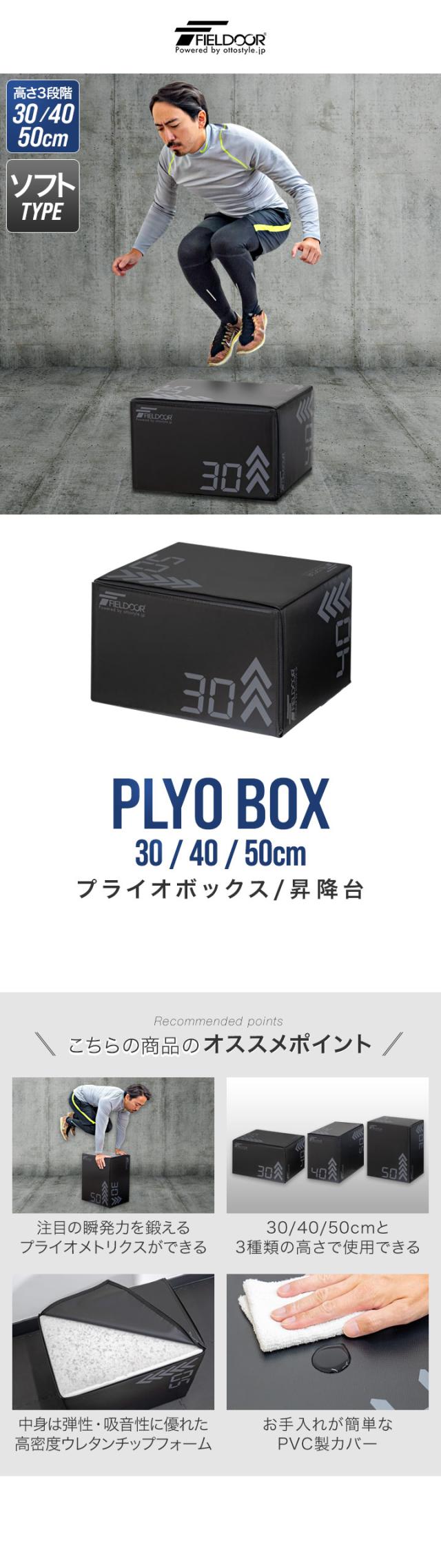 FIELDOOR プライオボックス 昇降台 30cm×40cm×50cm ソフトタイプ 3in1 ジャンプボックス ウレタン×PVCカバー ジャンプ台 ステップ台 跳び箱 踏み台 体幹 筋力 瞬発力 体幹トレーニング 筋トレ トレーニング器具 1年保証 送料無料