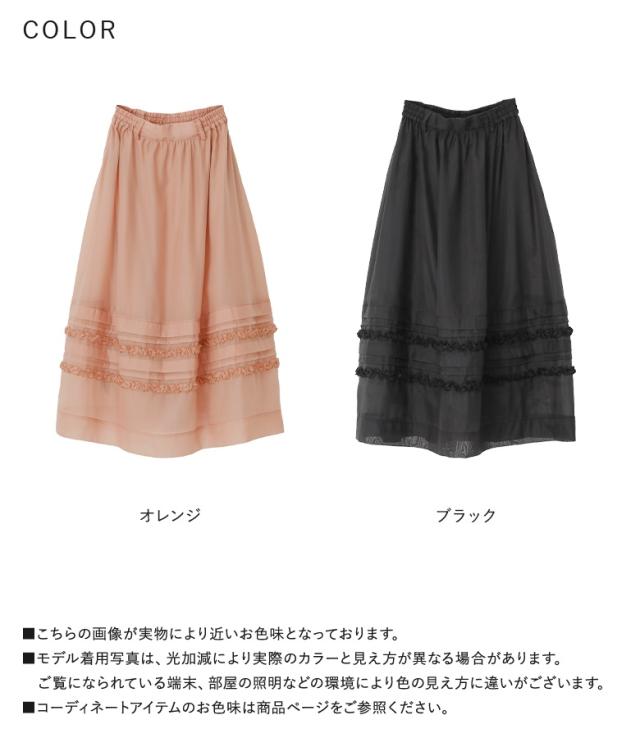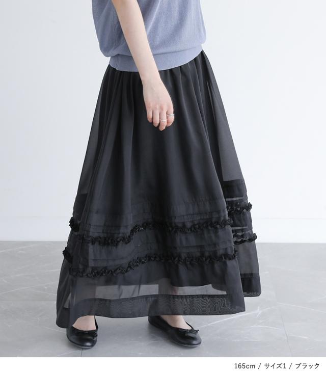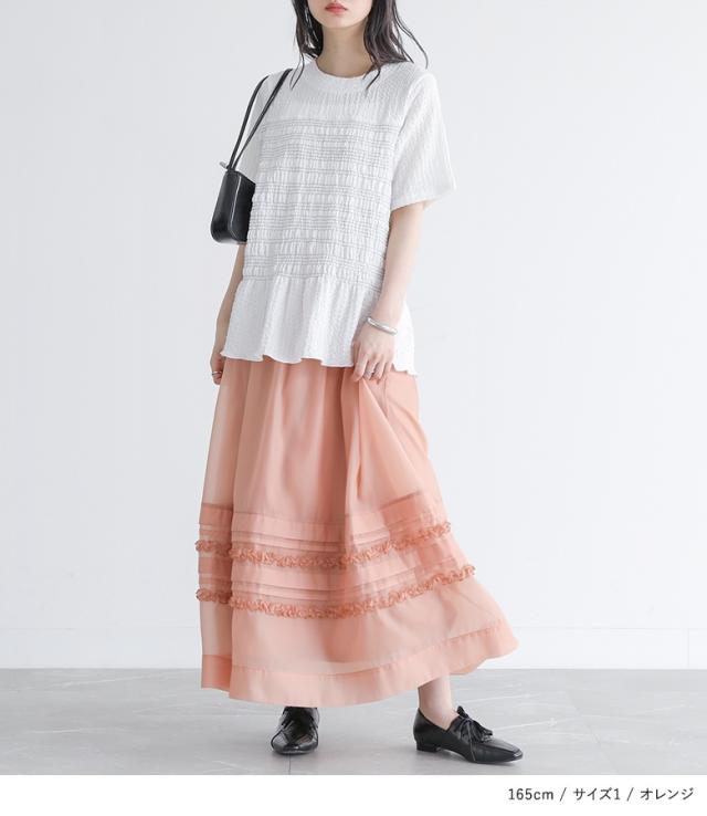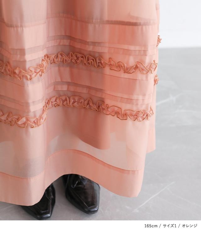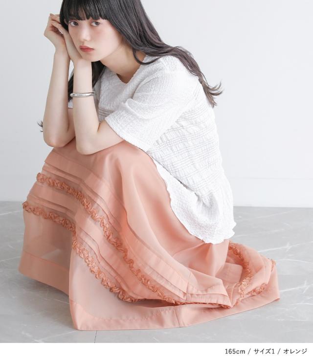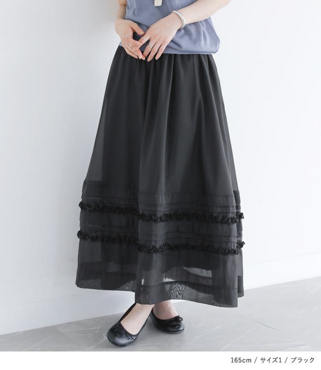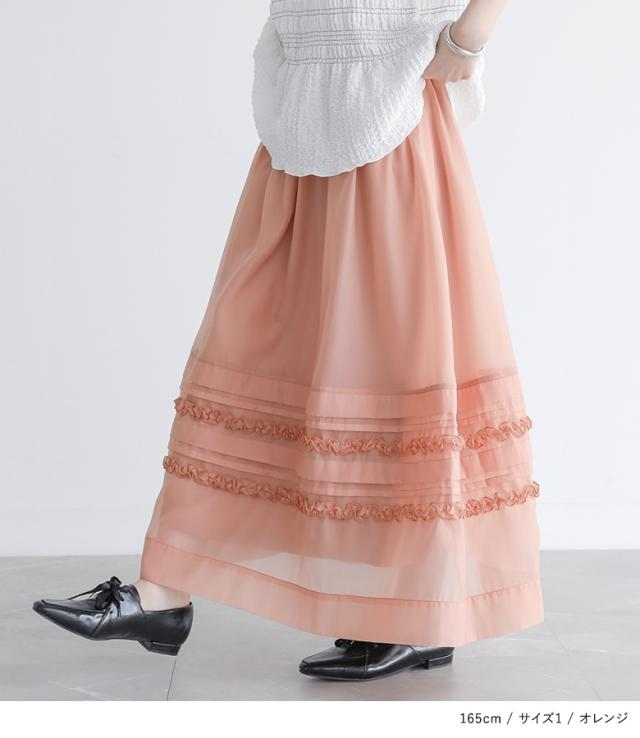 『シアータックフリルスカート』【メール便不可】【20】[スカート レディース ボトムス ロング丈 オーガンジー ギャザー フリル タック シアー 裏地付き 春 夏]
