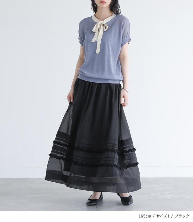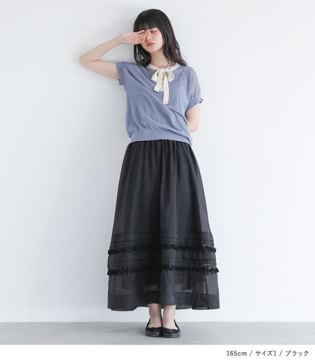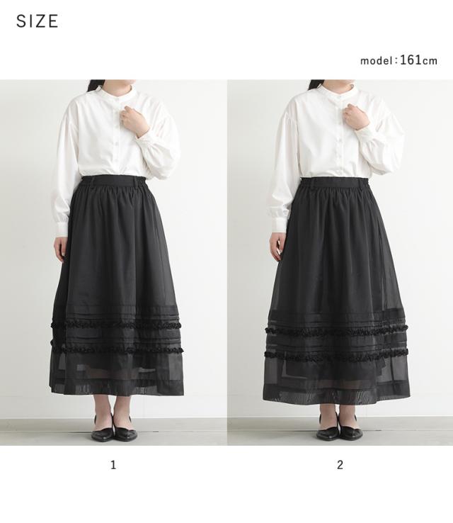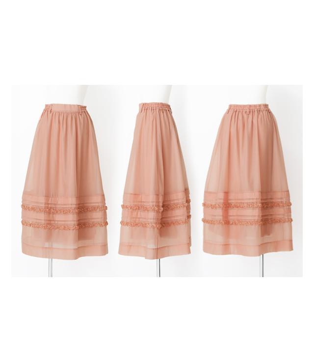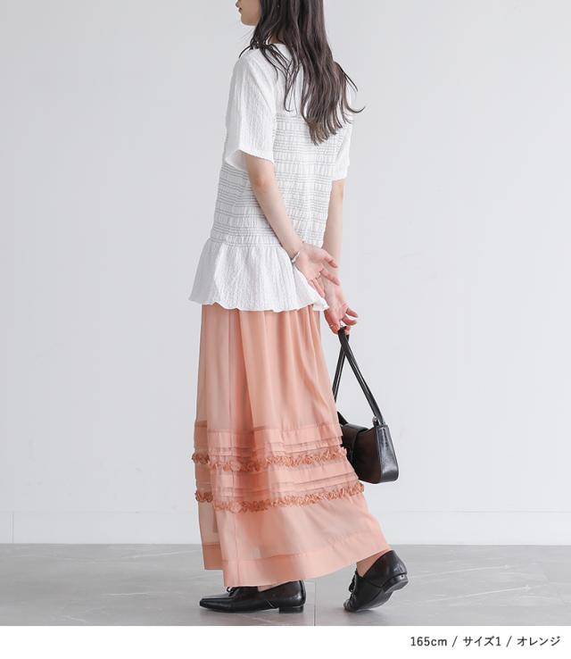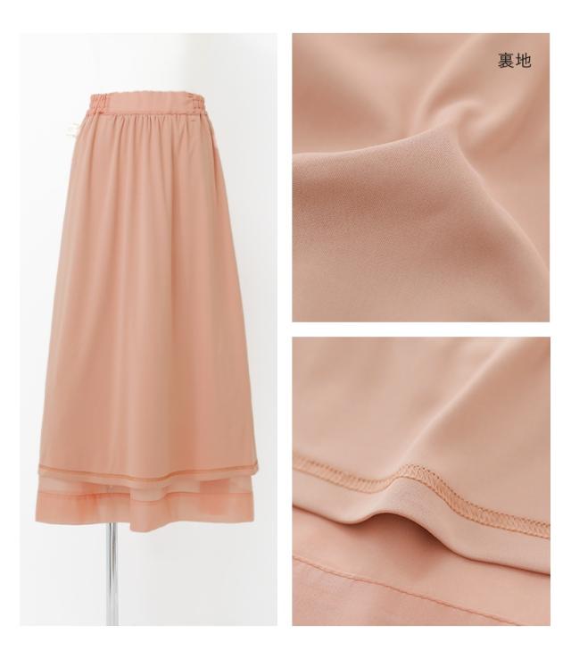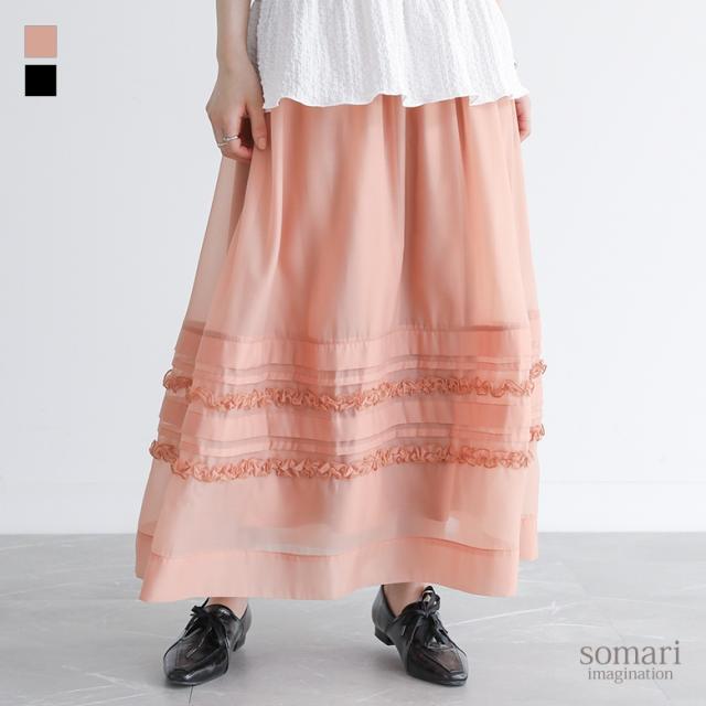 『シアータックフリルスカート』【メール便不可】【20】[スカート レディース ボトムス ロング丈 オーガンジー ギャザー フリル タック シアー 裏地付き 春 夏]