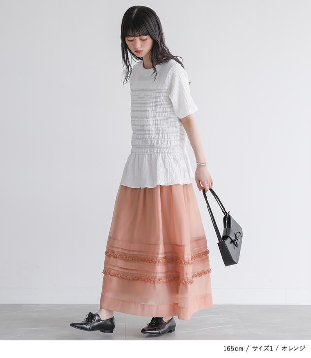 スカート レディース ボトムス ロング丈 オーガンジー ギャザー フリル タック シアー 裏地付き 春 夏 【TP】 ロングスカート マキシスカート オーガンジースカート シアースカート フリルスカート ギャザースカート マキシ丈 ウエストゴム 無地 シースルー 透け感 おうちで洗える カジュアル レトロ クラシカル シンプル ナチュラル キレカジ フェミニン ガーリー 楽ちん Sサイズ Mサイズ Lサイズ LLサイズ 3Lサイズ XLサイズ ぽっちゃり 体型カバー 大きいサイズ プラスサイズ 10代 20代 30代 40代 50代 60代 女子会 オフィス 通勤 通学 お買い物 お出掛け 旅行 リゾート おしゃれ お洒落 トレンド 流行 somari imagination ソマリイマジネーション 可愛い系 大人女子 大人可愛い お洒落可愛い 大人カジュアル 上品 きれいめ osharewalker オシャレウォーカー おしゃれうぉーかー オレンジ ブラック 黒[ID]12bn0ua