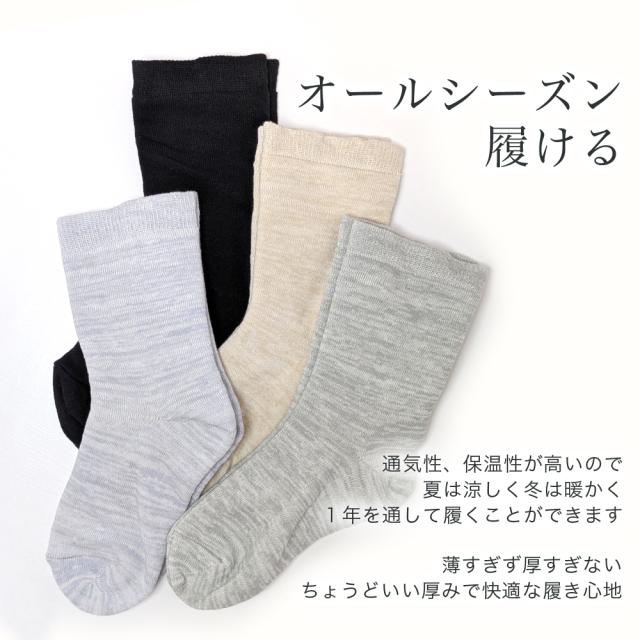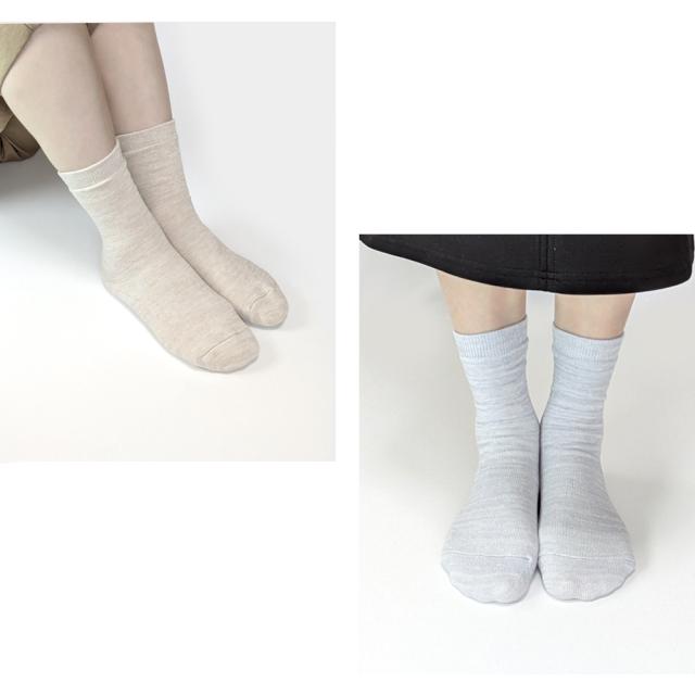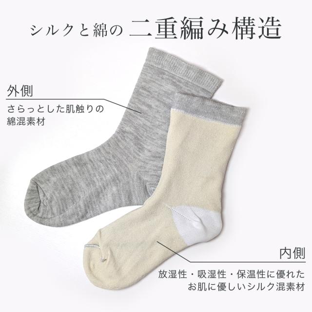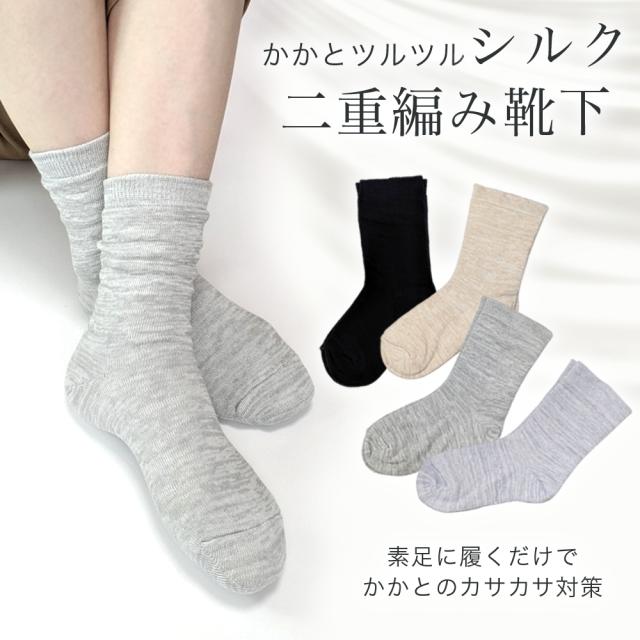 靴下 レディース ソックス 4足セット シルク二重編み クルー丈 かかとつるつる 22-24cm