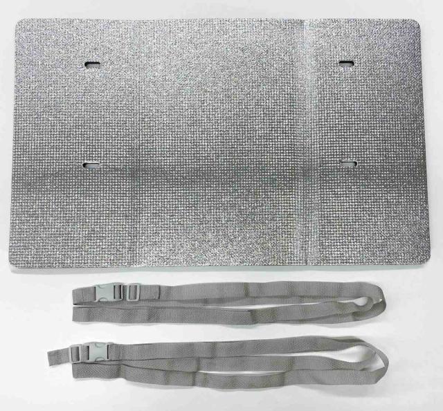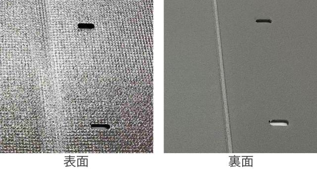| 材質 | 上面:PETアルミ蒸着フィルム 本体:ポリエチレン ベルト、止め具:ポリプロピレン |