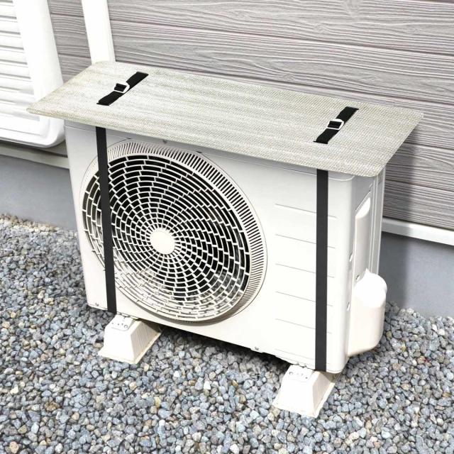 室外機カバー エアコン 室外機の天板保護パネル ベルトタイプ 80×33cm ( エアコン室外機カバー エアコンカバー アルミ ベルト 日光対策 直射日光 室外機 遮熱 日除け パネル カバー 庭 ベランダ 省エネ 節電 )