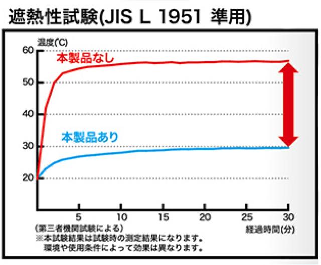 遮熱性の高いアルミが直射日光をしっかりさえぎり、何も付けていない時と比べて表面温度を約26度も低く保ちます。