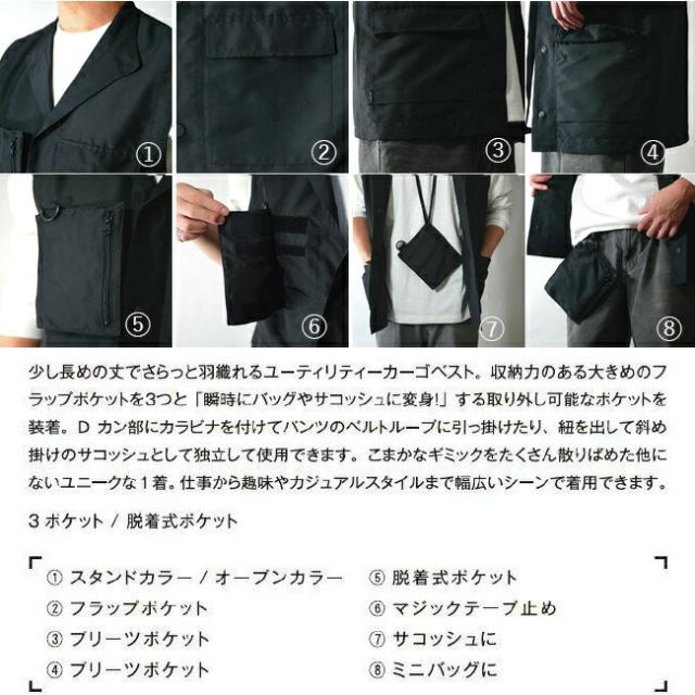 少し長めの丈でさらっと羽織れるユーティリティーカーゴベスト。