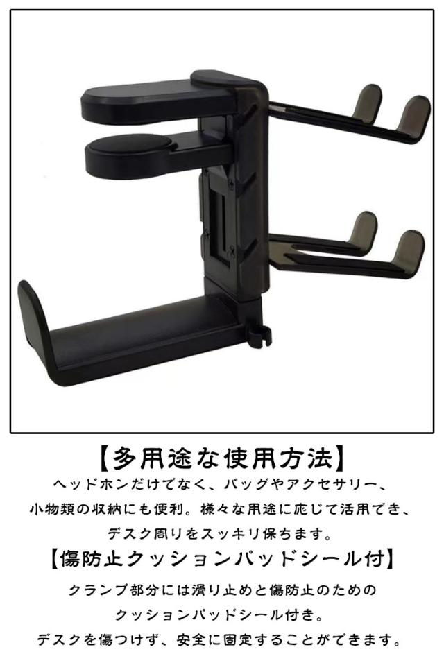 ヘッドホンスタンド クランプ 固定 洋服掛け 壁 コード 二重フック デスク ヘッドホンかけ テーブル 穴開けない 引っ掛け ヘッドホンスタンド 机 カバン掛け 引っ掛ける コートハンガー ヘッドホンハンガー バッグハンガー コントローラー スタンド