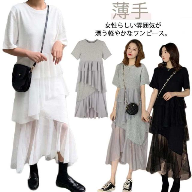 半袖 夏 体型カバー 柔らか ロング丈 マキシワンピース 30代 マキシ丈 秋 ワンピース きれいめ ワンピース チュール ゆったり ワンピ 薄手 ロング シンプル 無地 カジュアル デイリー 20代 マキシワンピース 40代 50代