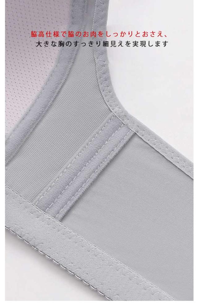 | 大きな胸を小さく見せるブラジャー。 やや薄手のカップで、ボリュームが出すぎないのも嬉しいポイント。 ノンワイヤーで窮屈感を軽減。 レースがしっかり胸をつつんで綺麗なシルエットを作ります。 脇高仕様で脇のお肉をしっかりとおさえ、大きな胸のすっきり細見えを実現します。 ストラップも太目仕様なので、肩への食い込みも軽減されます。 | |