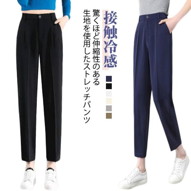 美脚パンツ 接触冷感 冷感 接触冷感 春 涼感 通勤 オフィス ウエストゴム 股上深め テーパードパンツ ひんやり レディース 九分丈パンツ 夏 伸縮性 やわらかい パンツ テーパードパンツ ストレッチ ロングパンツ 無地 カジュアル きれいめ おしゃれ
