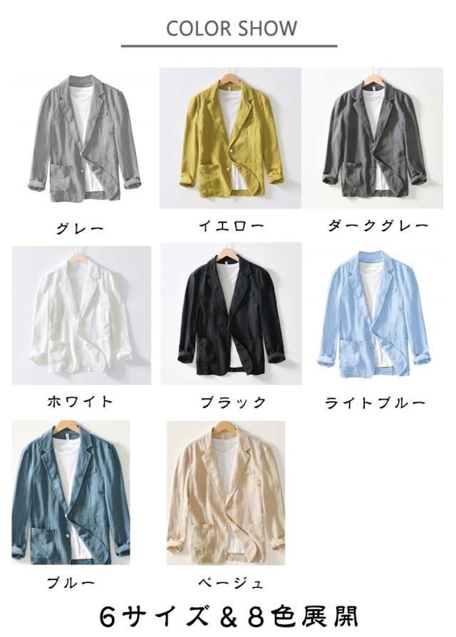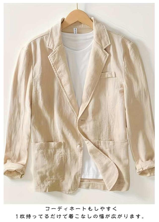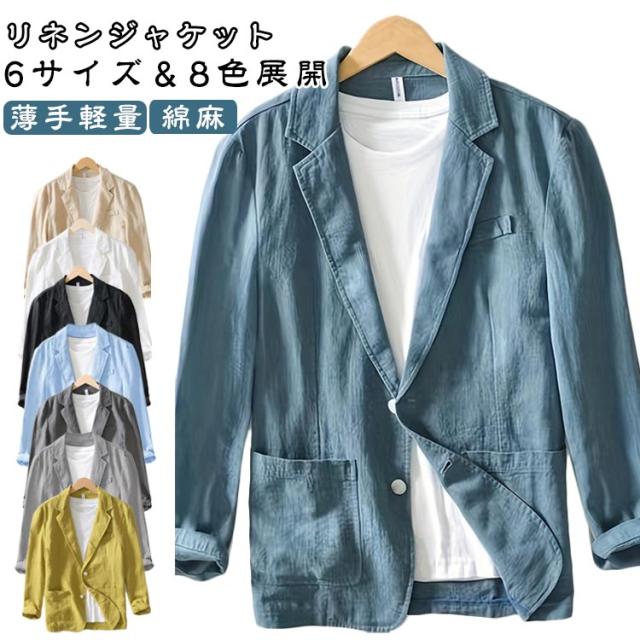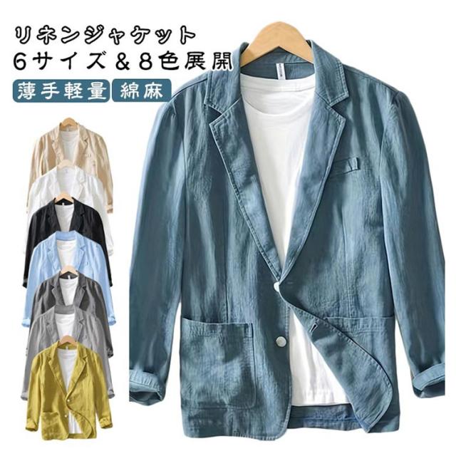 サマージャケット メンズ 無地 綿麻 テーラードジャケット リネン 軽量 夏 薄手 ジャケット 長袖 おしゃれ リネンジャケット ゆったり 秋 ライトアウター リネンジャケット スーツジャケット カジュアル 父の日 男性 紳士 日常 普段着