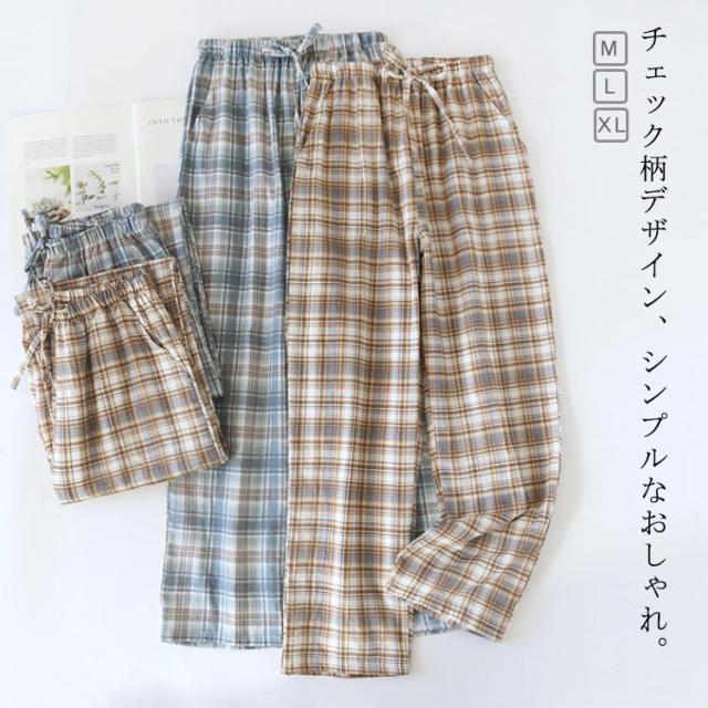 ロングパンツ パジャマ ルームウェア 秋 レディース ズボン ルームパンツ 春夏 薄手 ルームウェア 紐付き チェック柄 コットン ウエストゴム ナイトウェア ゆったり 男女兼用 カジュアル 部屋着 寝間着 蒸れにくい