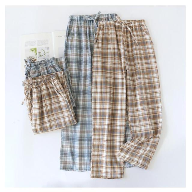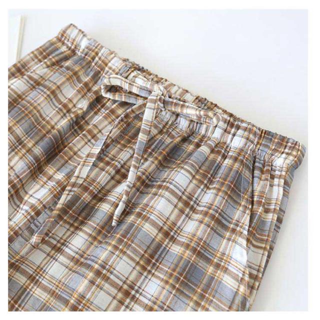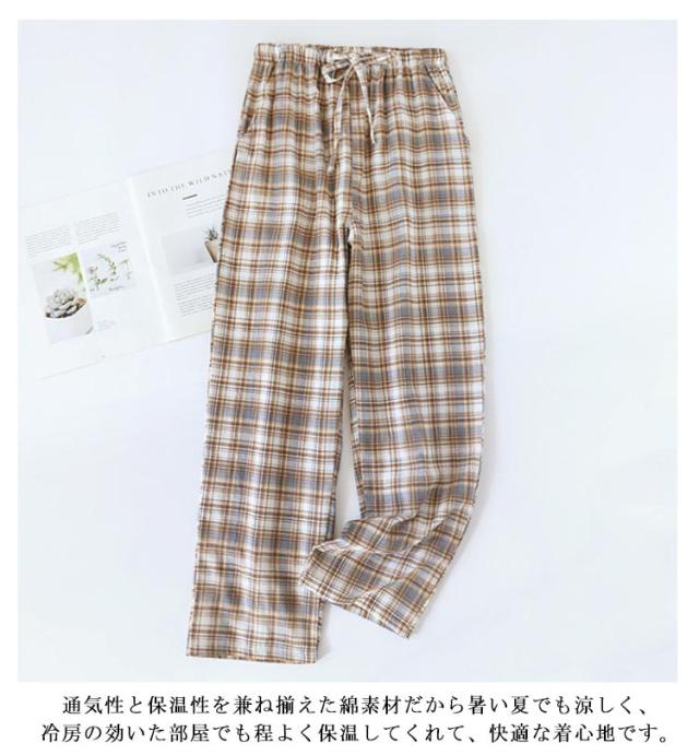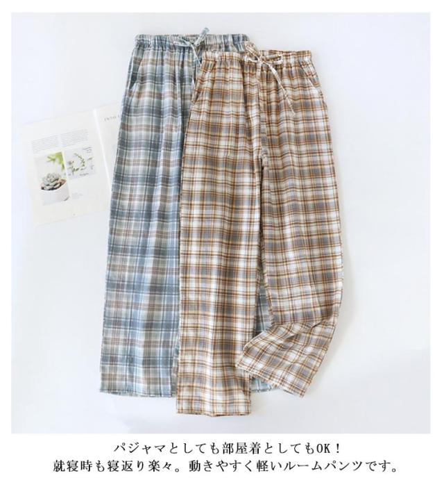 | チェック柄デザイン、シンプルなおしゃれ。 ウエストはゴムでゆったり、紐で調節出来ます。お腹が締め付け感がない。 パジャマとしても部屋着としてもOK!就寝時も寝返り楽々。動きやすく軽いルームパンツです。 通気性と保温性を兼ね揃えた綿素材だから暑い夏でも涼しく、冷房の効いた部屋でも程よく保温してくれて、快適な着心地です。 | |
