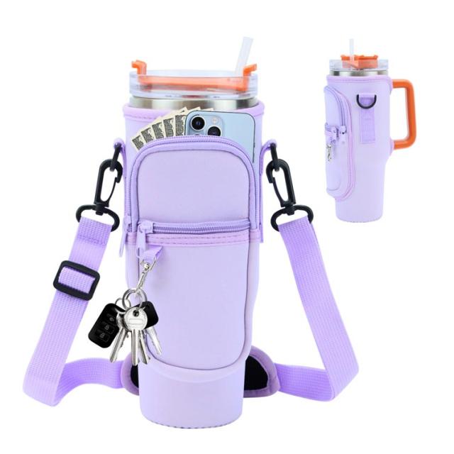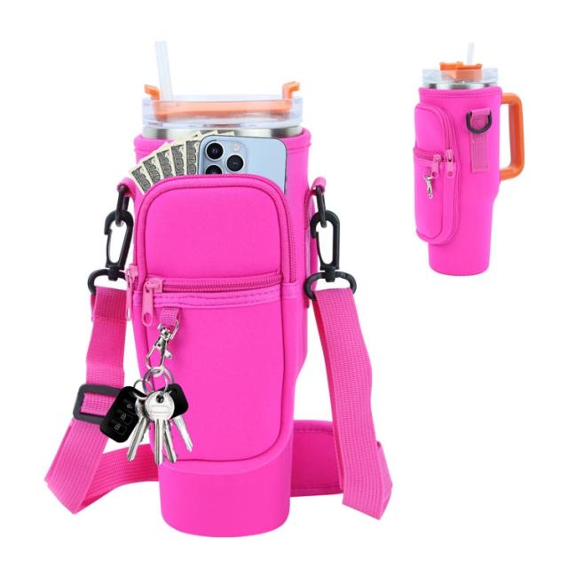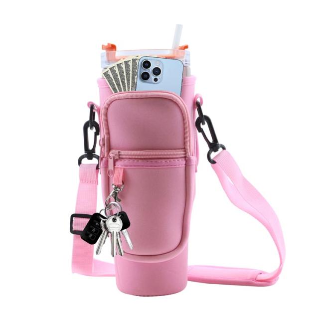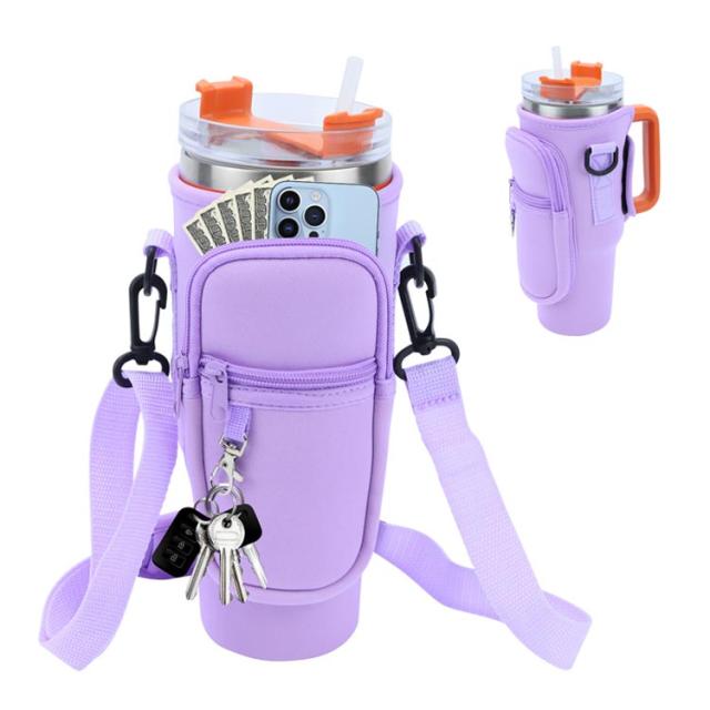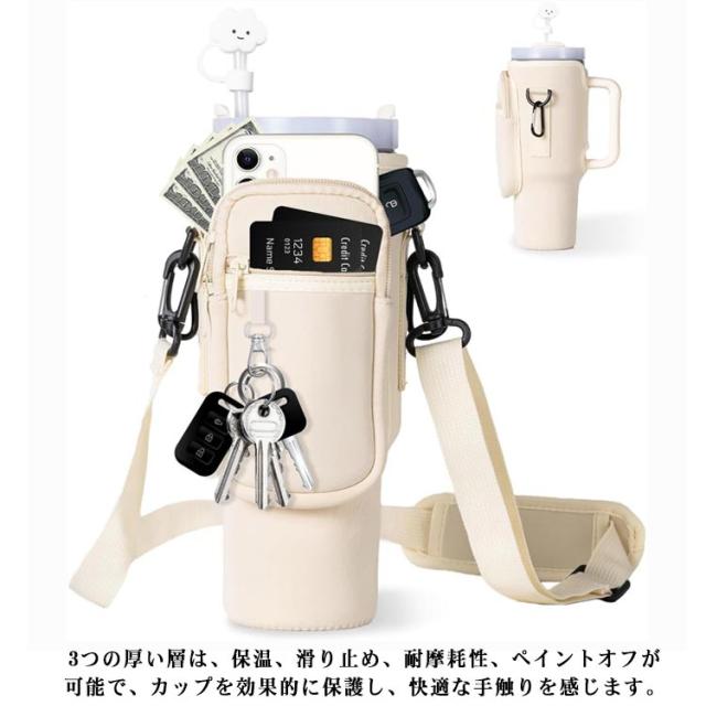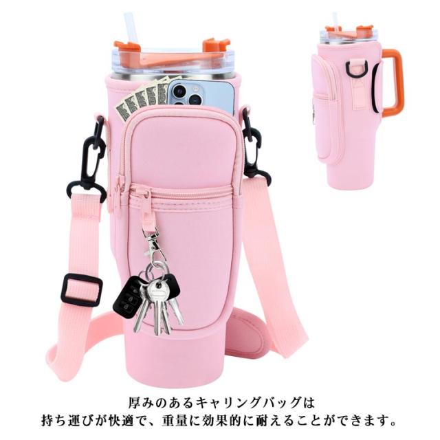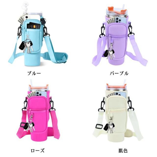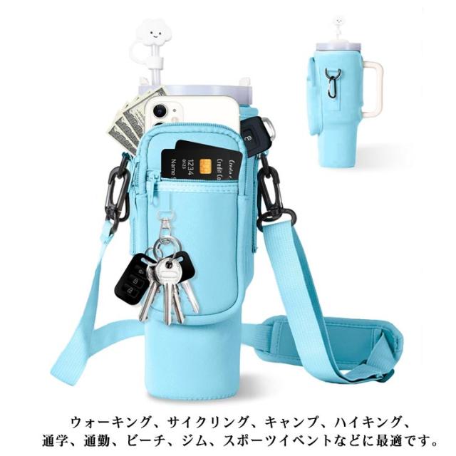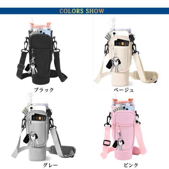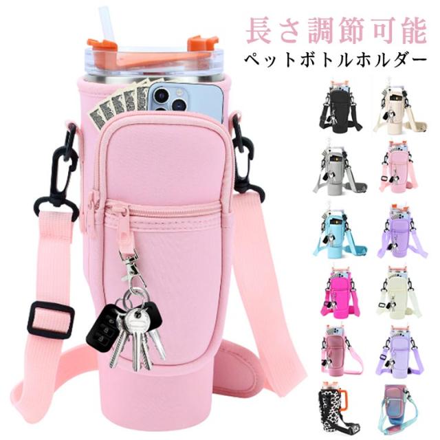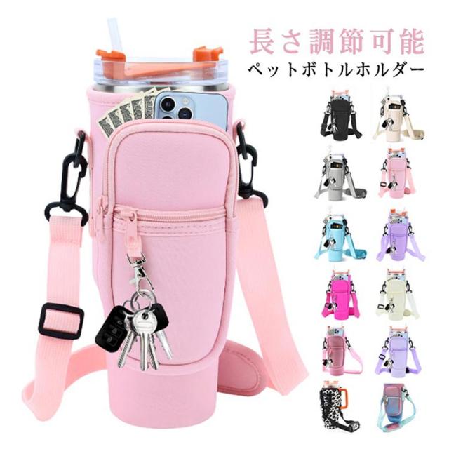 ボトルストラップ カード収納 水筒ケース スタンレー用カップホルダー 水筒ケース ペットボトルカバー 長さ調節可能 ペットボトルケース スマホショルダー タンブラー 斜めかけ 肩掛け 子供 大人 入園