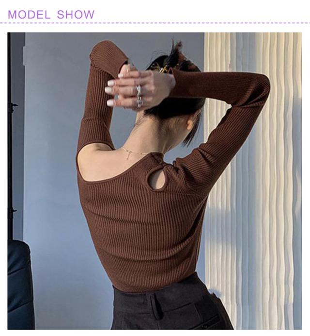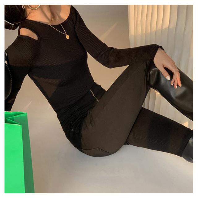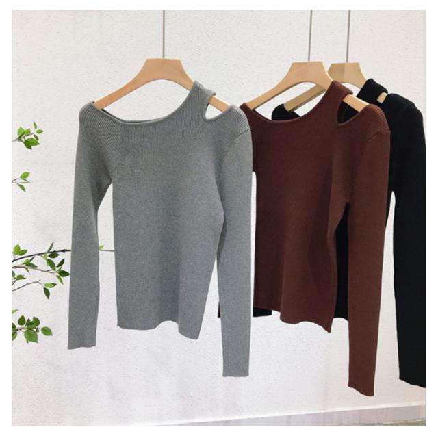 細見え 大人可愛い 長袖 ニットソー フェミニン ニット ニットプルオーバー ニットトップス ワンショルダー ワンショルダー セーター シンプル カジュアル トップス アシンメトリー 春 秋 ブラック ブラウン