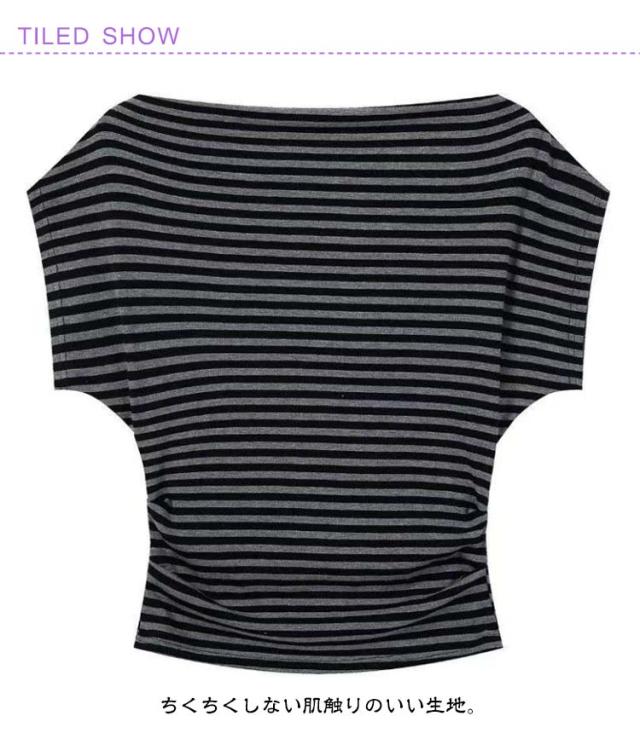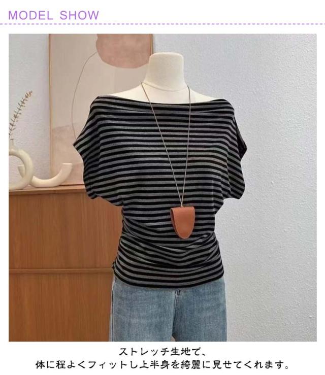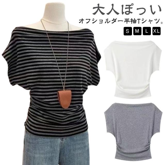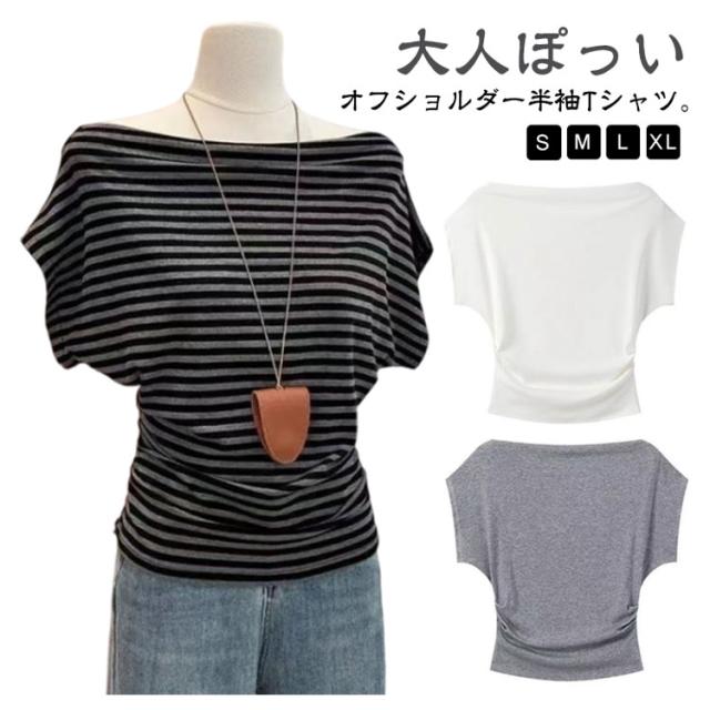 半袖 セーター 肩出し オフショルダー ボーダー柄 M 肩開き 着やせ レディース tシャツ ニットソー トップス ニットトップス 無地 春夏 大人可愛い セクシー シンプル カジュアル 半袖Tシャツ S オフショルダー L
