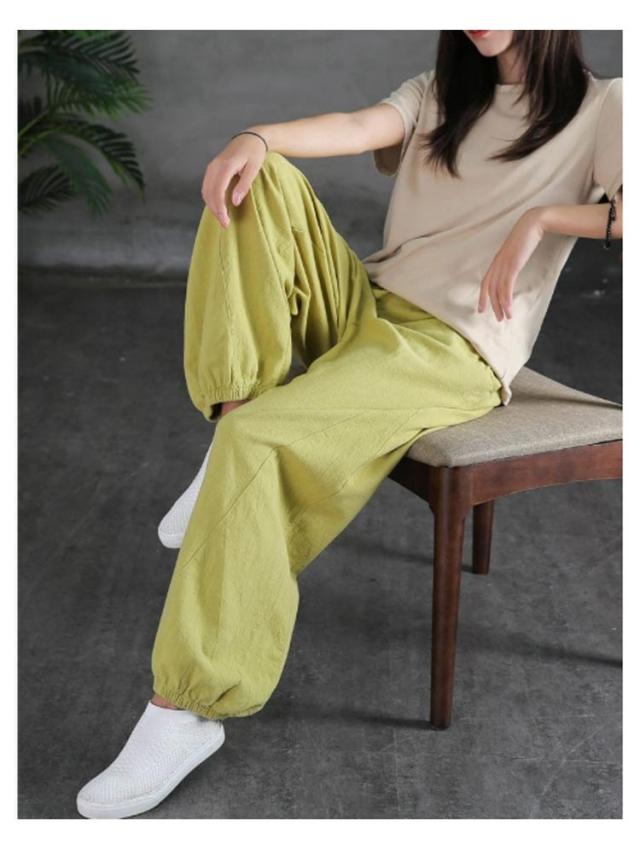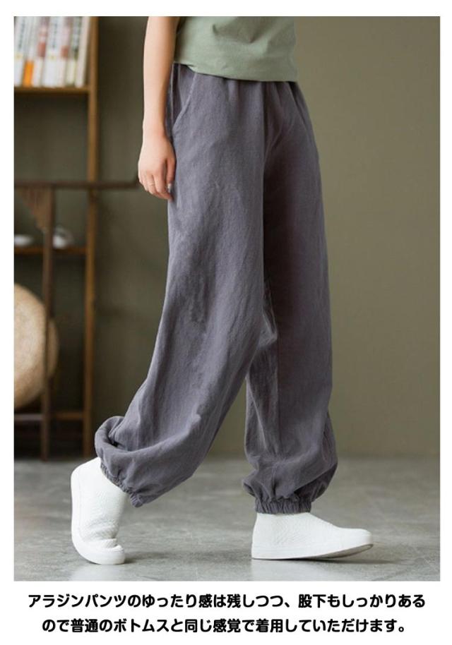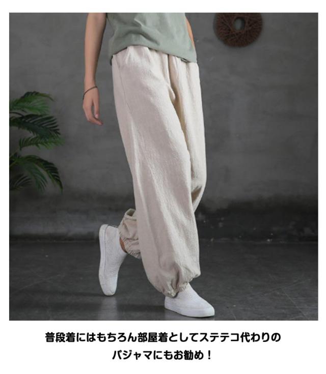 サルエルパンツ レディース ウエストゴム サルエルパンツ 10分丈 部屋着 ズボン 無地 ポケット アジアンファッション 綿麻 山ガール アウトドア ルームウェア 無地 春 夏