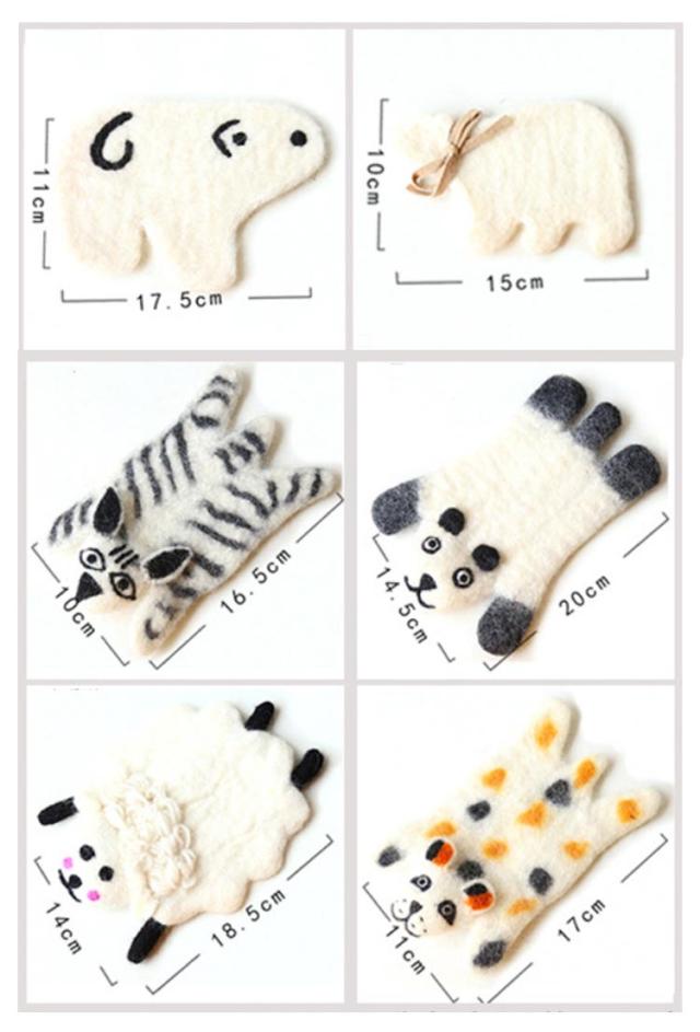 | 【2個セット】 モコモコアニマル柄の敷物風なコースターはシャレが効いていて楽しい! 折れなくて柔らかい感じコースターとして最適。 あたたかみのあるフェルトで作られ、のんびり寝そべった姿に癒されます。 マグカップ用だけでなく、観葉植物用のコスターにしたり、立てかけてそのままインテリアとしてもお使いいただけます。 ご自宅やオフィスでのちょっとしたアクセントにピッタリです。 ハンドメイドのため、サイズや顔の表情が異なります。予めご了承ください。 | |