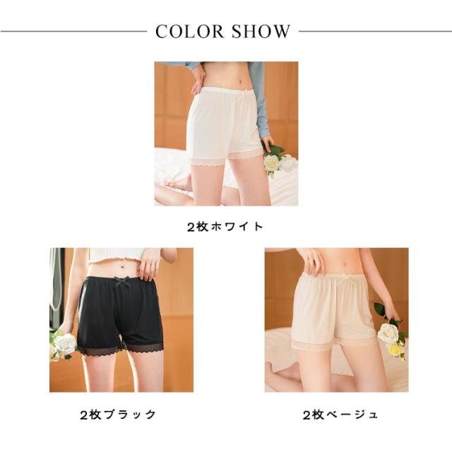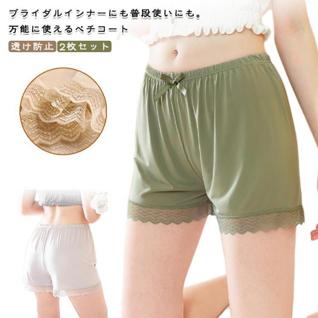 ペチパンツ 【2枚セット】 【2枚セット】 ペチコート ウエストリボン レディース ショートパンツ ブライダルインナー 静電気防止 パンツ レディース下着ペチコート 涼しい オーバーパンツ ワンピース スカート 透け防止 スパッツ