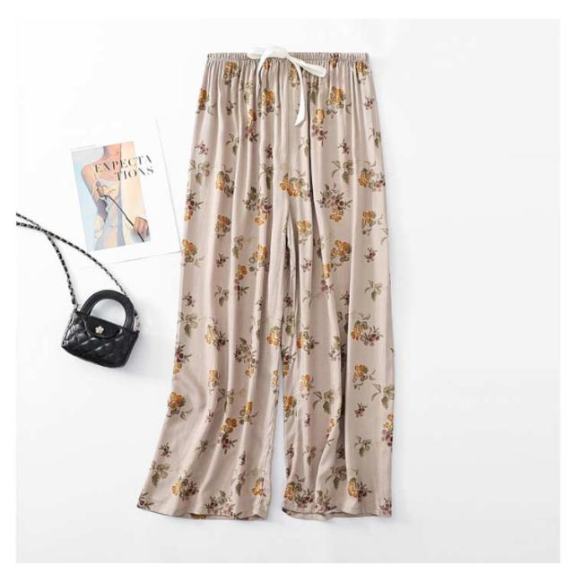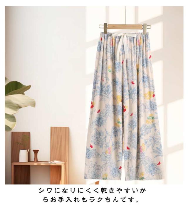 レディース 薄い 春 パジャマ ルームパンツ 夏 ルームウェア 花柄 9分丈 ステテコ ルームウェア 夏物 ワイドパンツ ボトムス 総柄 ゆったり 涼しい 薄手 九分丈 リラックスパンツ 部屋着 おしゃれ かわいい 婦人 ロングパンツ