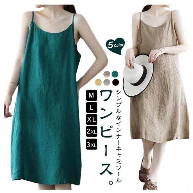 ペチワンピース ロングキャミ 無地 夏 レディース ロング キャミソールワンピース 春 シンプル 薄手 キャミワンピース 重ね着 大きいサイズ ゆったり 体型カバー キャミソールワンピース ナチュラル 部屋着 お出掛け 通勤 普段着 カジュアル