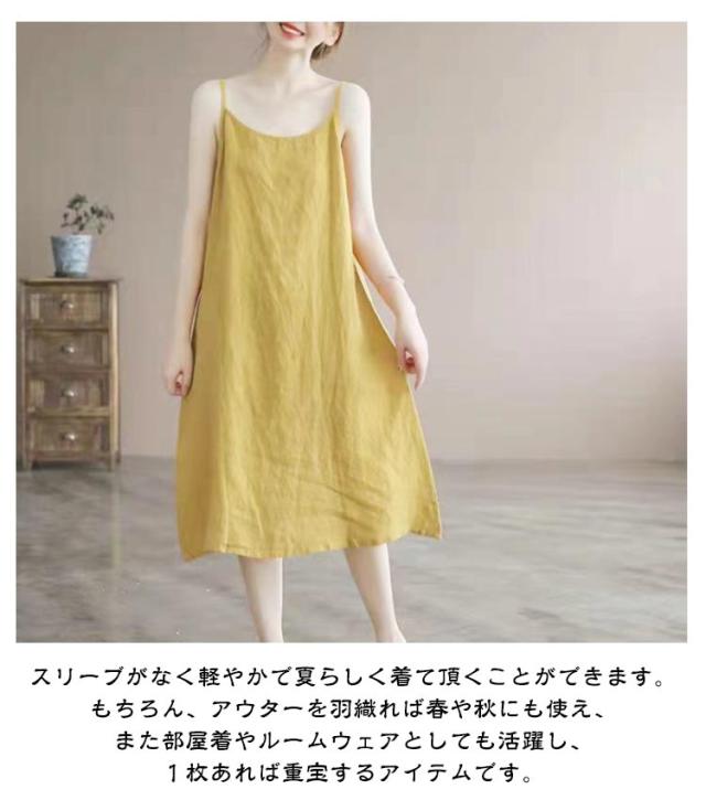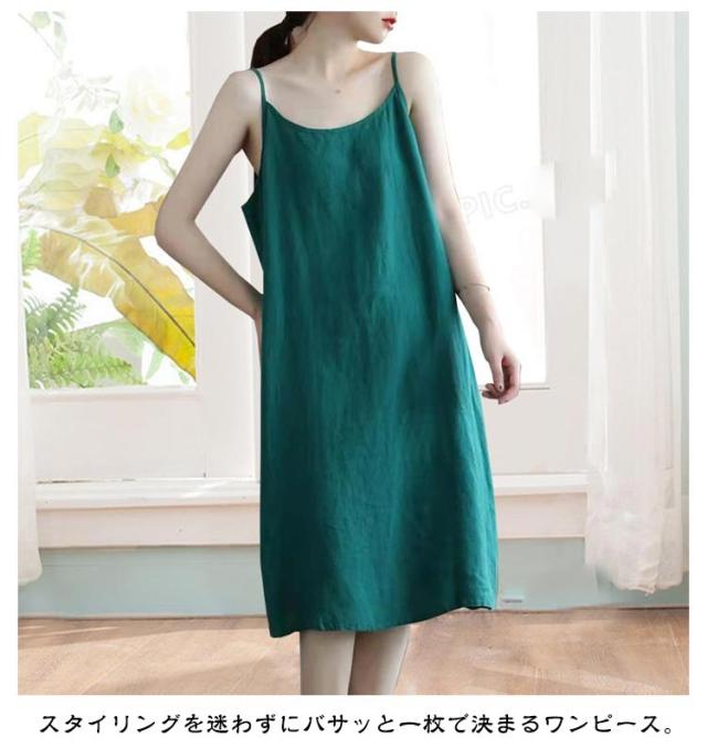 | シンプルなインナーキャミソールワンピース。 春夏はパジャマとして着れる部屋着一枚。 体のラインを自然とカバーしてくれる。 身体のラインをぼかしてくれる身幅で華奢見え効果ばっちり!!締め付け感もなく動きやすいので各年齢層の女性にもおすすめのワンピースです。ゆったりとしたスタイルで今っぽくナチュラルに、かつ体型カバーを叶えます。 スリーブがなく軽やかで夏らしく着て頂くことができます。もちろん、アウターを羽織れば春や秋にも使え、また部屋着やルームウェアとしても活躍し、1枚あれば重宝するアイテムです。 スタイリングを迷わずにバサッと一枚で決まるワンピース。 | |