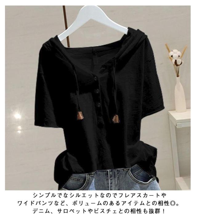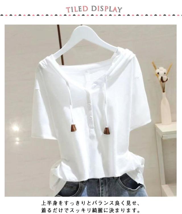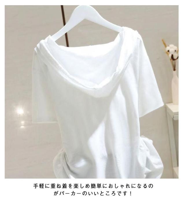 半袖パーカー 半袖パーカー 薄手 Tシャツ フード付き ゆったり カジュアル レディース 半袖 カットソー トップス プルオーバー フード付きtシャツ 夏服 サマーパーカー 夏パーカー