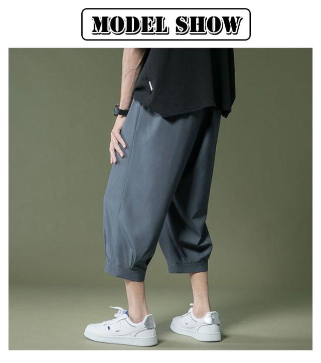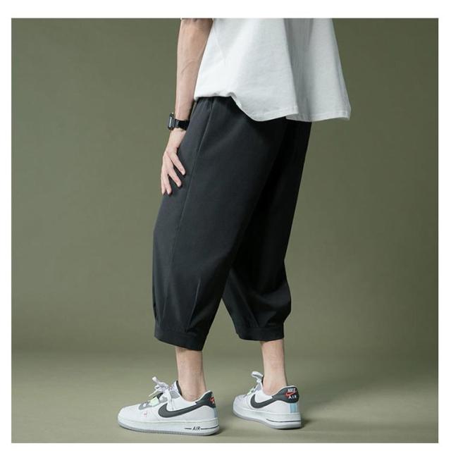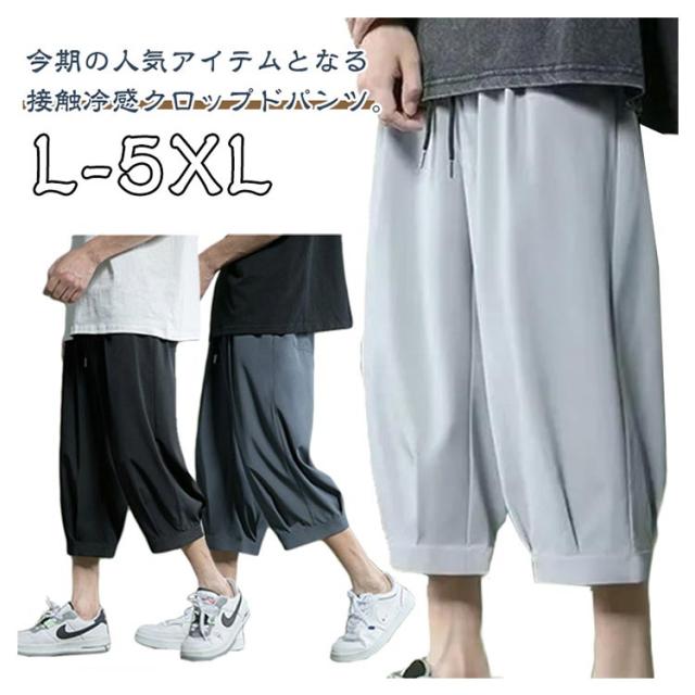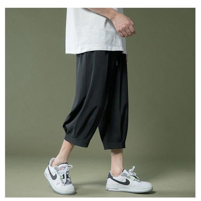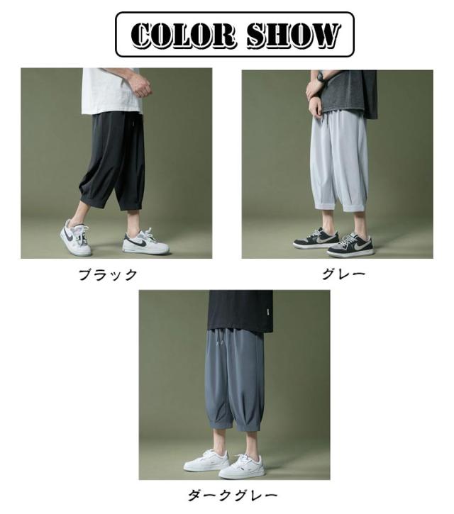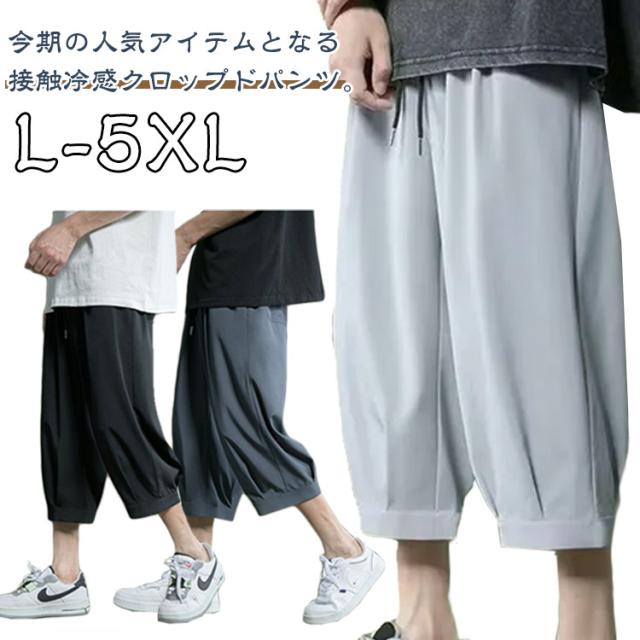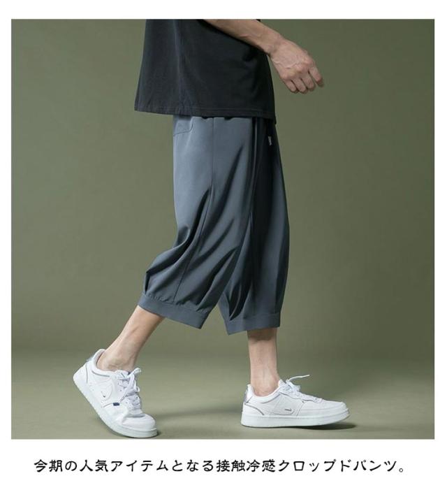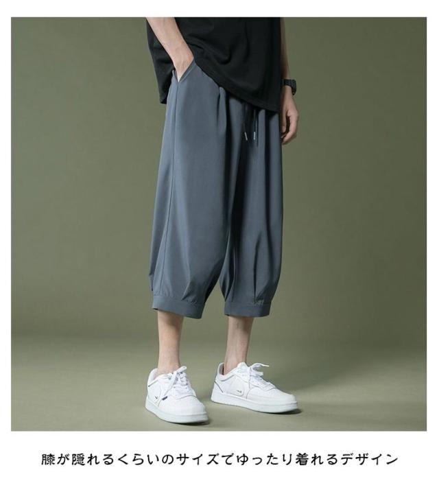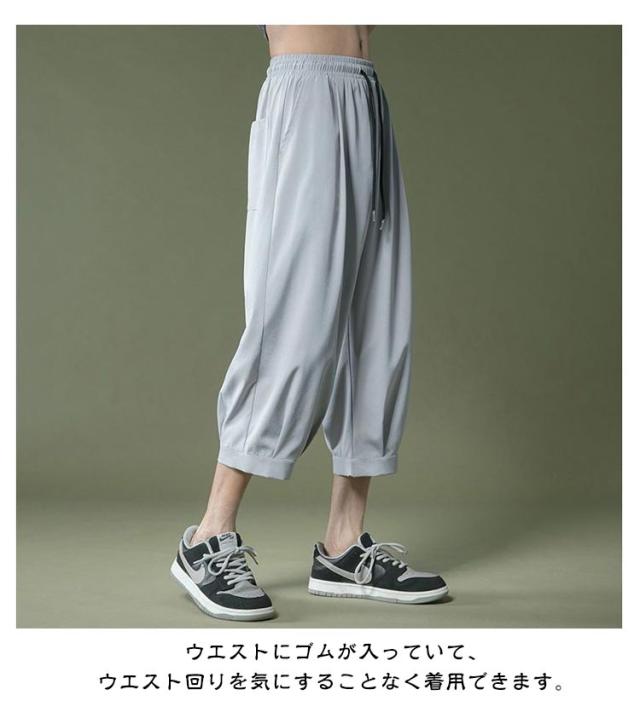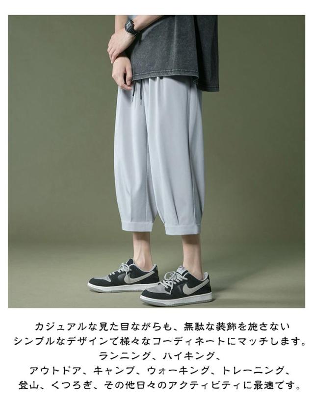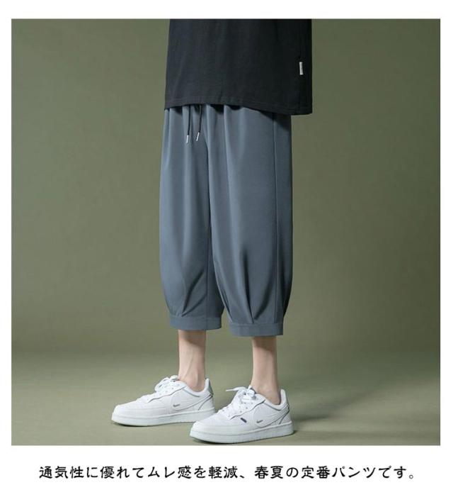 アイスシルクパンツ パンツ 春 夏 男 ウェストゴム 7分丈 クロップドパンツ ひんやり メンズパンツ ゆったり 大きいサイズ 涼しい シンプル リラックス アイスシルクパンツ イージーパンツ 半ズボン ワイドパンツ カジュアル 父の日