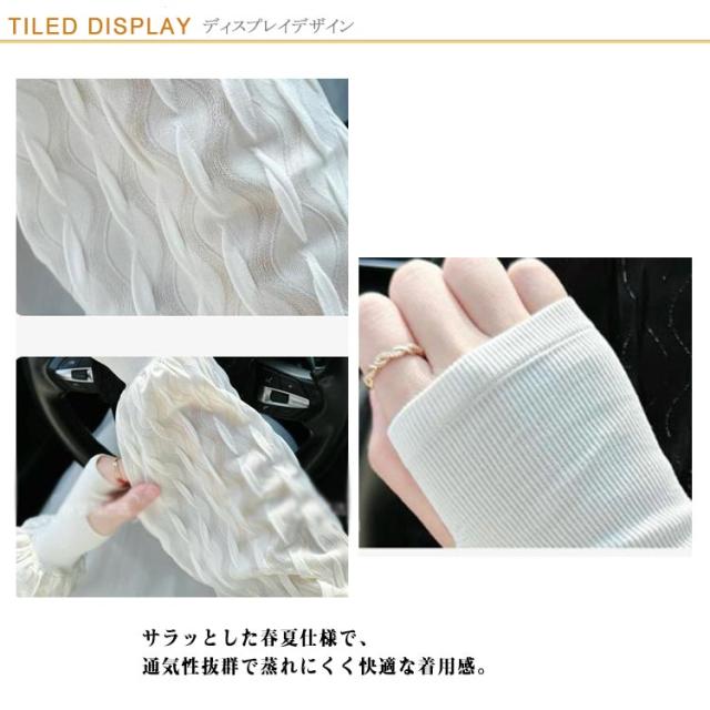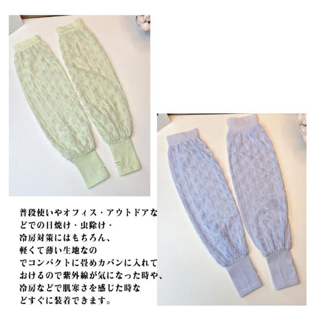 | ・締め付けないアームカバー ・手の甲までしっかりカバーできる安心の長め丈。 ・サラッとした春夏仕様で、通気性抜群で蒸れにくく快適な着用感。 ・普段使いやオフィス・アウトドアなどでの日焼け・虫除け・冷房対策にはもちろん、軽くて薄い生地なのでコンパクトに畳めカバンに入れておけるので紫外線が気になった時や、冷房などで肌寒さを感じた時などすぐに装着できます。 | |