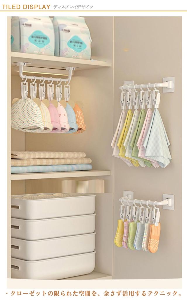 | ・クローゼット 粘着収納クリップ ・クローゼットの限られた空間を、余さず活用するテクニック。 ・壁にペタッと貼るだけで様々なものを収納することができます。 ・布巾やゴム手袋など小物をしっかり挟める便利な10連クリップ。 | |