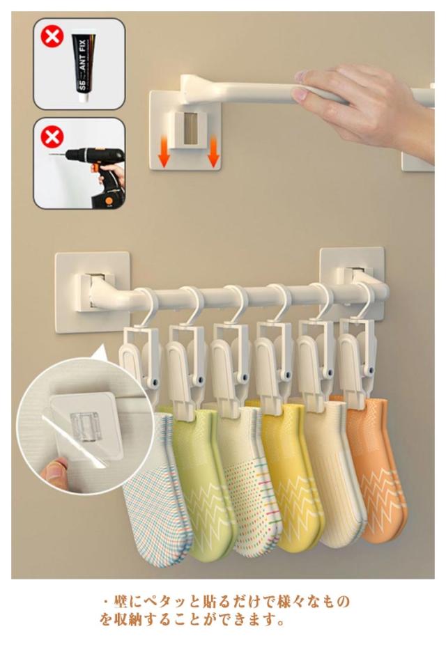フック付き 2個セット 壁掛け ハンガーバー 貼る ウォールハンガー 壁掛けフック ウォールフック 帽子掛け 洋服掛け 衣類 壁面
