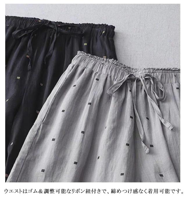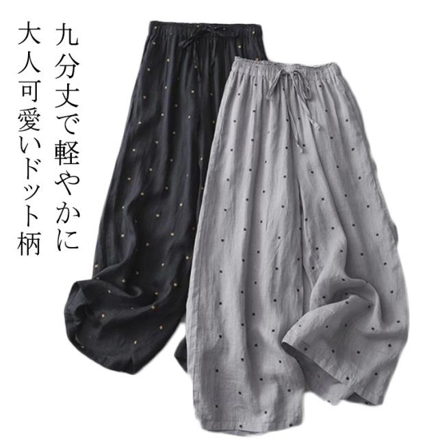 レディース パンツ 九分丈パンツ ワイドパンツ 夏 ゆったり ドット柄 レディース ウエストゴム パンツ 涼しい 薄手 春夏 ボトムス