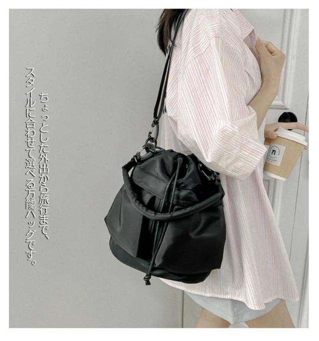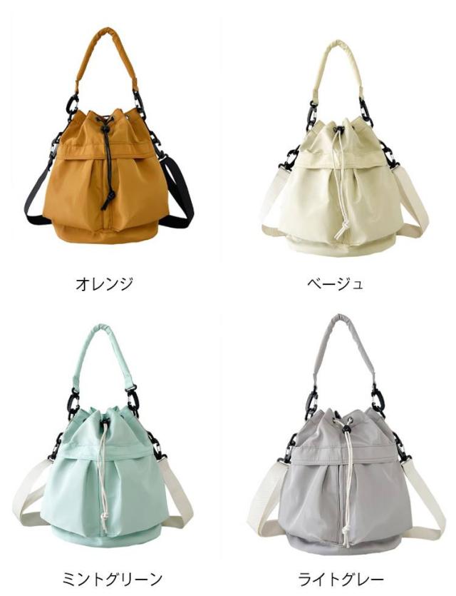 巾着バッグ 鞄 可愛い ナイロン生地 2way 軽量 手提げ 巾着ショルダー 巾着バッグ レディース 肩掛け 韓国風 かばん おしゃれ 斜めがけ カジュアル 通勤 通学 お出かけ カーキ ブラック