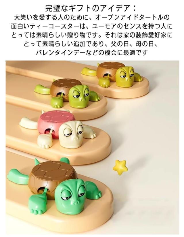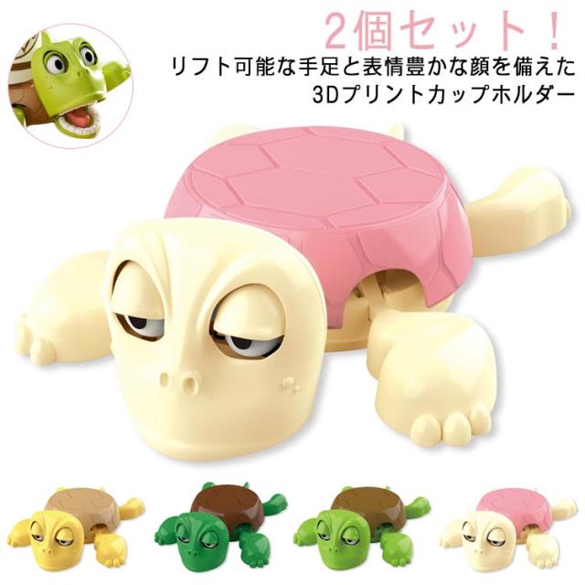 面白い デスク用の風変わりなカメコースター 2個入り タートルコースター 面白い オープンアイドタートルティーコースター リフト可能な手足と表情豊かな顔を備えた3Dプリントカップホルダー カメコースター テーブル ホームバー