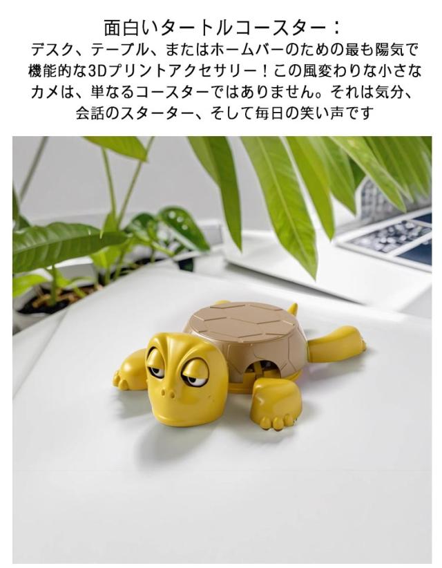 | 2個セット!リフト可能な手足と表情豊かな顔を備えた3Dプリントカップホルダー インタラクティブな楽しみ:カップをそのシェルに置いて、魔法が起こるのを見てください!圧力により、頭、脚、貝殻が持ち上げられ、その目と口が驚くことで広く開いています。それはあなたのカメが「おっと、それは重い!」と言っているようです 完璧なデザイン:高品質で耐久性のある3Dプリント素材から作られたこのコースターは、持続するように構築されています。鮮やかな緑色と詳細なデザインは傑出した作品になります 面白いタートルコースター:デスク、テーブル、またはホームバーのための最も陽気で機能的な3Dプリントアクセサリー!この風変わりな小さなカメは、単なるコースターではありません。それは気分、会話のスターター、そして毎日の笑い声です 汎用性の高い使用:コーヒーマグ、ビールグラス、ティーカップの場合でも、このカメは提供して楽しませる準備ができています。 完璧なギフトのアイデア:大笑いを愛する人のために、オープンアイドタートルの面白いティーコースターは、ユーモアのセンスを持つ人にとっては素晴らしい贈り物です。それは家の装飾愛好家にとって素晴らしい追加であり、父の日、母の日、バレンタインデーなどの機会に最適です | |