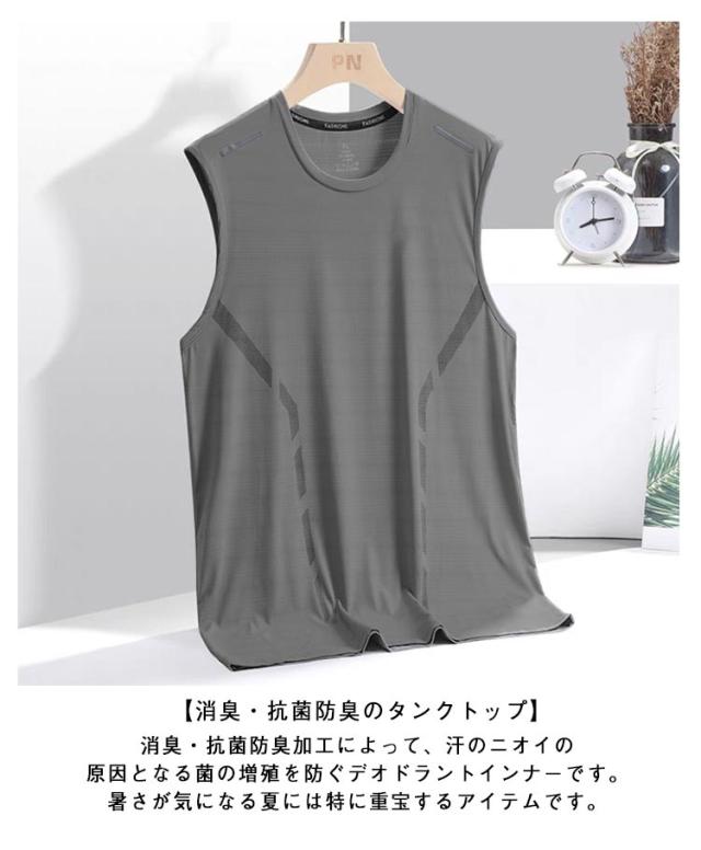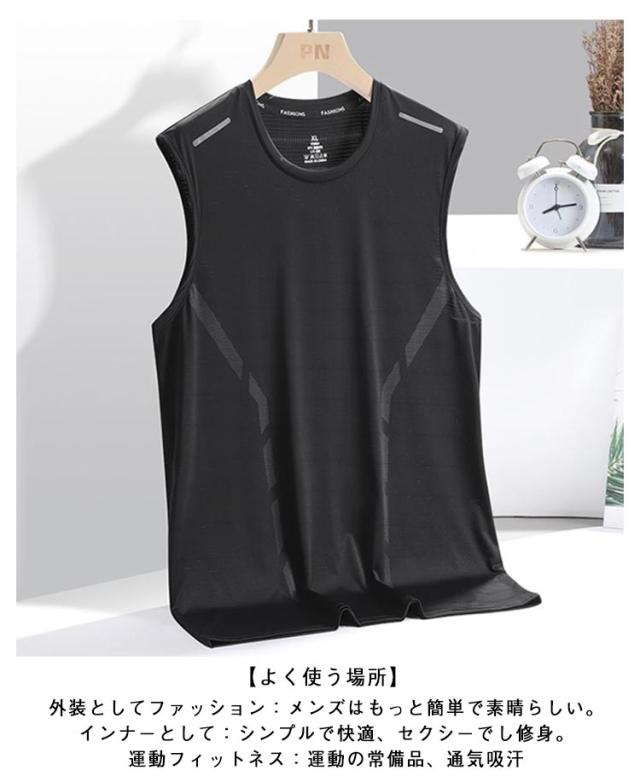 接触冷感 夏用 夏物 スポーツ メンズ アイスシルク インナーシャツ ひんやり 冷感 シームレス 下着 アンダーウェア スポーティ タンクトップ 部屋着 運動着 トレーニング 涼しい バスケ 吸汗速乾 抗菌防臭 冷感 肌着 伸縮性 黒 白 大きいサイズ